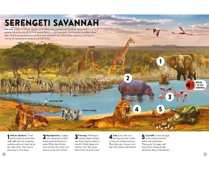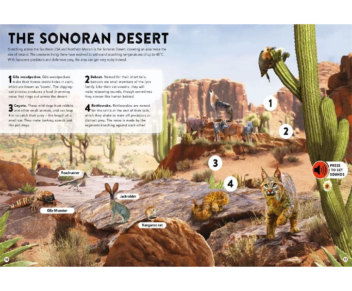 Description : * Giant, fact-packed reference books with 50 sounds per title * Astonishing, photo-real artwork brings the wonders of the natural world to life * High-quality sounds, with buttons integrated into the artwork for maximum immersion