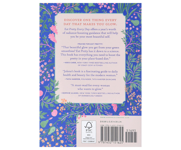 Description : Eat Pretty Every Day†is a wonderful way to jumpstart a year of beautiful choices from meals to mindset to self-care. Frank Lipman, MD, author of 10 Reasons You Feel Old and Get Fat. 365 days' worth of radiance-boosting guidance that will help you be your most beautiful self breakout hit. Eat Pretty continues to win over audiences of all ages with its groundbreaking and user-friendly exploration of beauty nutrition. The author™shotly anticipated new book welcomes existing fans and newcomers alike, presenting 365 bite-size daily readings that make it easy to put beauty nutrition know-how to use in everyday life. Explores every aspect of what it means to eat pretty, offering simplified nutritional science, seasonal recipes, motivating goals and challenges, self-care exercises and uplifting mealtime mantras organized by the four seasons, so you can get daily inspiration that is timely and relevant. Fans of Eat Pretty will also love the daily inspiration of Eat Pretty Every Day that provides even more tips and tricks that will help you live your most beautiful life. Discover the daily challenges that will help you find your glow, inside and out! Makes a wonderful birthday, graduation or just because gift for any beautiful person in your life. It includes beautifully illustrated pages of nutritious inspiration that are colourful and engaging. Author Jolene Hart is a beauty and health coach certified by the Institute for Integrative Nutrition and the American Association of Drugless Practitioners. Her work has appeared in InStyle, People, Allure, and Organic Spa.